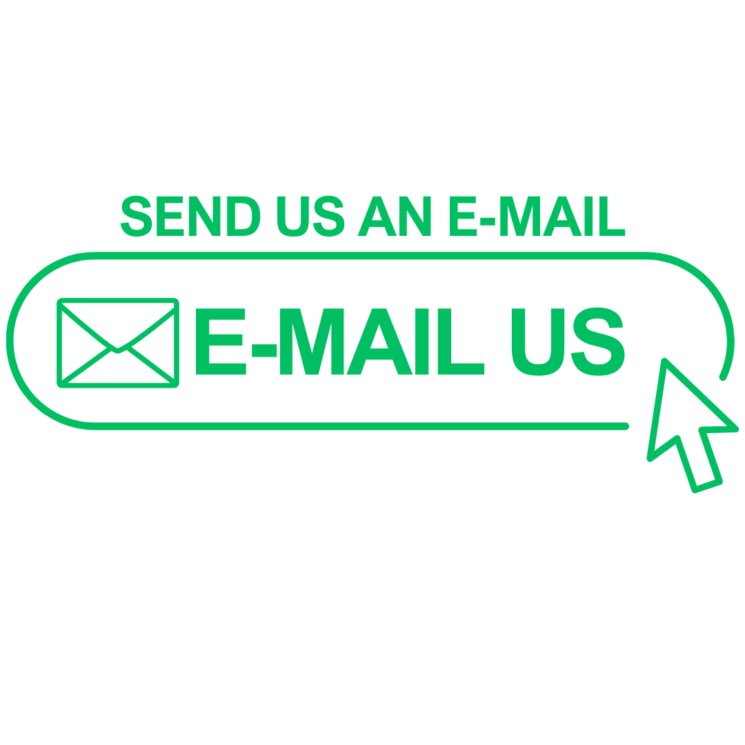 Green neon-style sign with text 'Send us an E-mail' and a large button labeled 'E-mail us' with an email icon and a cursor arrow pointing to it.